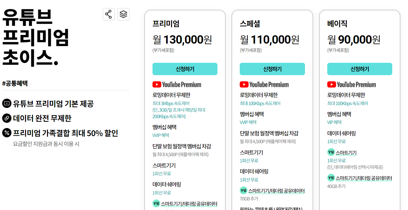 2) KT : 유튜브 프리미엄 초이스 요금제