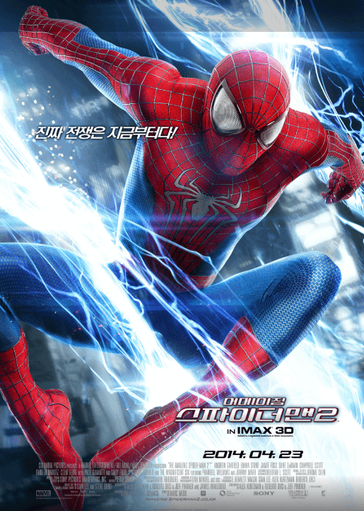 < 어메이징 스파이더맨 2> - 장르 : 액션 - 개봉 : 2014.04.23 스파이더맨의 삶에 완전히 적응한 피터 파커(앤드류 가필드)는 위험에 처한 시민들을 구하고 그의 사랑하는 여자친구 엠마 스톤과 데이트를 즐기기 위해 거미줄을 이용해 뉴욕을 활공한다. 그러던 어느 날, 열렬한 스파이더맨 팬이자 오스코프의 전기 엔지니어인 맥스(제이미 폭스)는 그의 작업 도중 치명적인 사고로 엄청난 양의 전력이 개발되었다는 것을 알게 된다. 하지만, 그 전력이 뉴욕을 마비시킨 거대한 정전으로 이어지고 혼란을 수습하려는 그의 영웅 스파이더맨의 공격을 받게 되자 배신감과 분노를 느끼는데 |